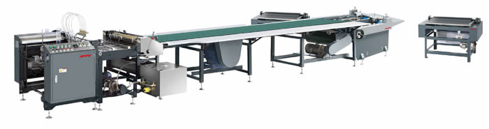 Полуавтоматическая машина для изготовления переплетных крышек может работать в режиме с одинарной подачей листов и способна принимать бумажные листы различных размеров. В данном процессе задействованна гибкая и стабильная магнитная, присасывающая поверхность для крепления бумаги. В связи с особенностью строения конвейерной ленты, подача бумаги осуществляется плавно без возможности смещения. Более того благодаря наличию регулируемого ролика склеивания, обеспечивается равномерное и аккуратное нанесение клея на поверхность бумаги. Циркулирующий желоб с системой контроля температуры, обеспечивает необходимую вязкость клея. Благодаря встроенной системе самоочистки, процесс очистки может быть завершен в течении пяти минут. Под конвейерной лентой находятся вентиляторы с высокой тягой всасывания, главной задачей которых является обеспечение стабильности процесса подачи листов бумаги и их надежного крепления на поверхности конвейера.